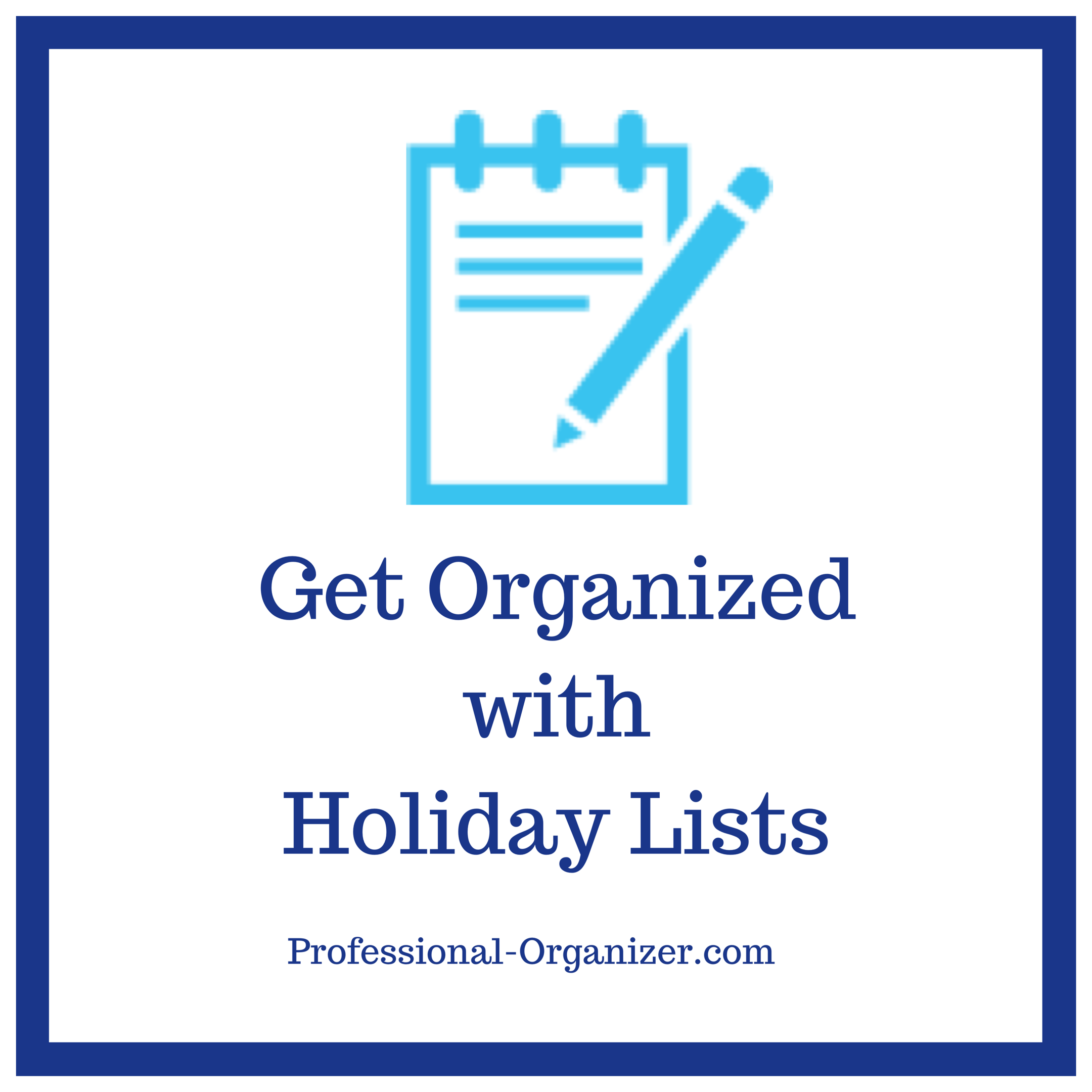 Holiday plans require more time to complete. Start early on all holiday activities. It seems too early to start your holiday planning in October but it is not. For cards, take the photo in October, choose cards and have these printed in early November, and address the cards the week of Thanksgiving. For gifts, go through your gift closet in October, finalize shopping in November, then mail presents the first week of December. As you can see, October organizing and planning is key to holiday success. Set a deadlines for each task. A deadline will help you focus your time and energy.