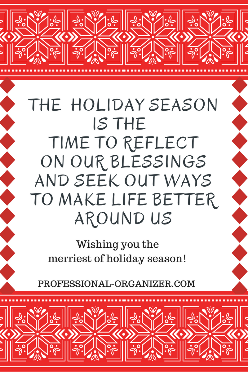 There’s a process for gift giving. Purchase -> Wrap -> Deliver. Set up a time and space to get it all out and get messy. Be sure you have all the supplies including boxes, tissue, bags and ribbon. You can delegate the wrapping or share the fun with a wrapping party. Write on your calendar when you are going to get this step and delivery complete. A gift at home is of no value, and makes you feel less, when it’s undelivered. Wrap up your holiday gift giving with a time to deliver your gifts.