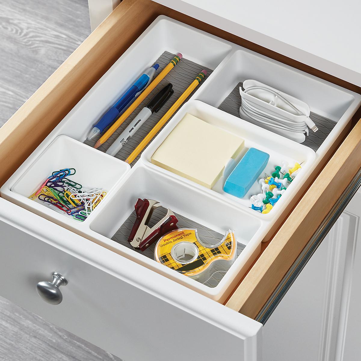 We want to tap a nail into the wall to hang a picture or unscrew a batter compartment quickly. Having a tool drawer in your kitchen or laundry room would be the spot to store these tools. The tools stored here are a hammer, two kinds of screw drivers of multiple size heads, and other frequently used tools. Having a drawer organizer helps keep items together and organized. (Note: the pencil space is where I would store the tools.)