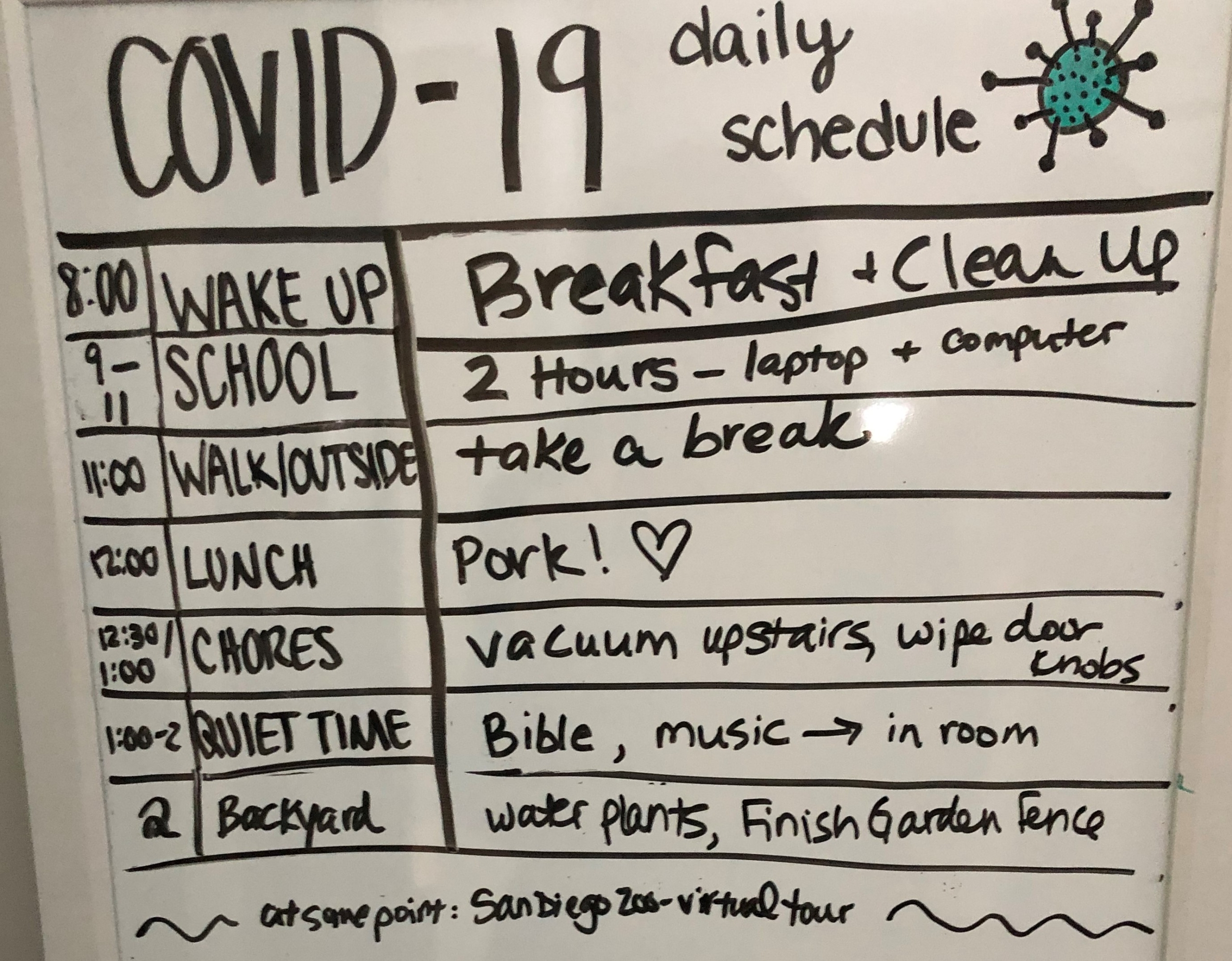 Routines have been rough this Spring. It’s time to initiate Summer routines to create a level of calm and sense of organization. Maybe your have not had a family meeting in a while. It’s important to host a family meeting to determine everyone’s bedtime. During your family meeting, recreate your family responsibility chart for partnering around the house on meals, laundry and cleaning. At your next meeting, discuss tech time and learning time. With the “New Normal” of COVID-19, we have the possibility to gain traction on family communication and routines.