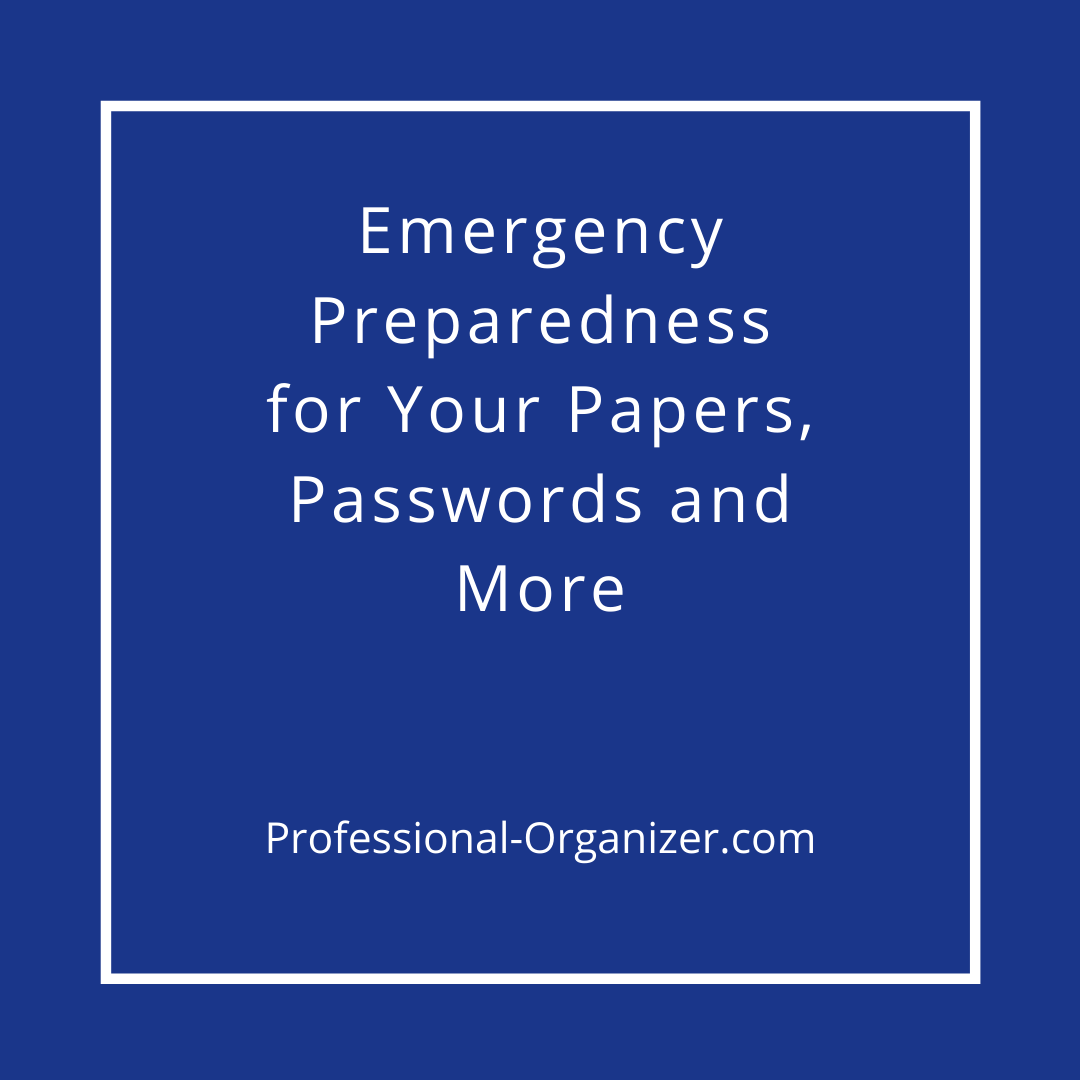 Emergency preparedness goes beyond organizing your stuff. It starts with a will, durable power of attorney and legal documents and moves to online passwords and your digital life. We all have important documents that we need access to during our lifetime and that our loved ones might need access to in the future. With the time we have, it’s a great time to organize these papers and more.