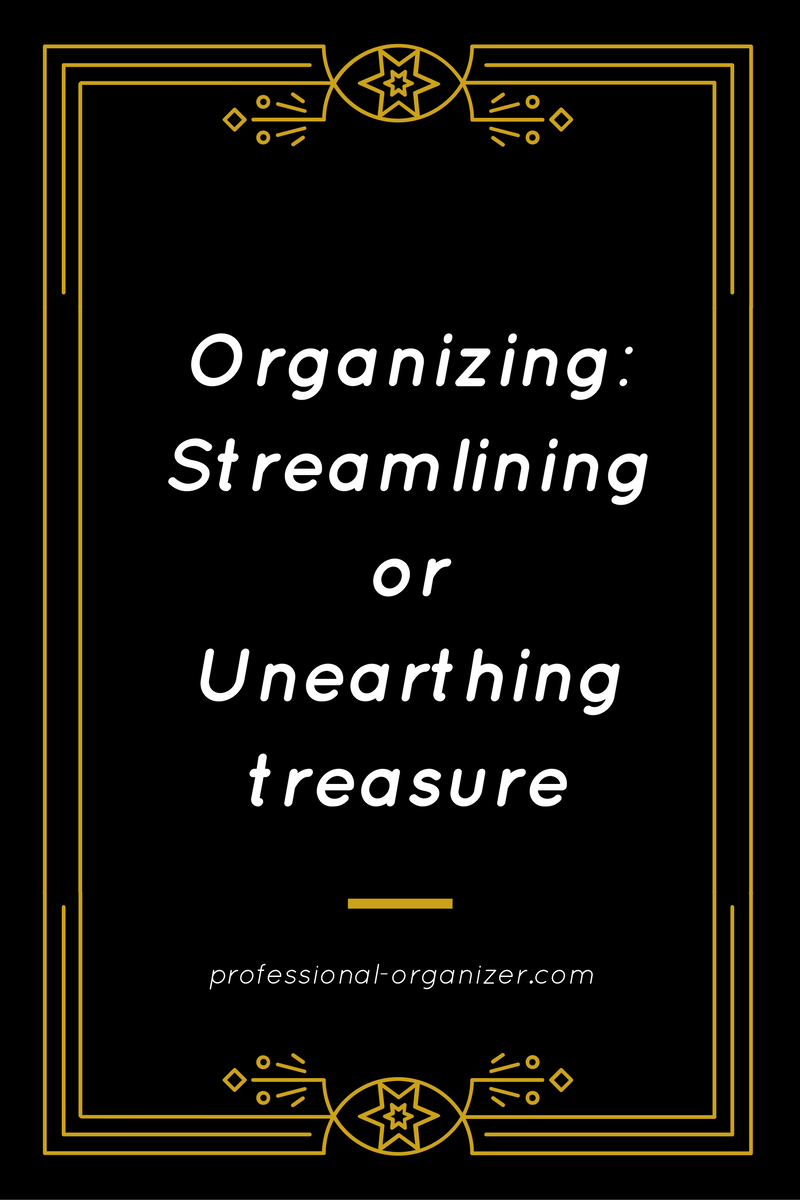 What’s organizing REALLY about? Working together with my clients I see two different ways we work. I also see the goals of our work in two different ways as well. Organizing while both strategies accomplish what my clients want, each process differs slightly. Here is my concept of organizing as letting go and organizing as unearthing treasures.