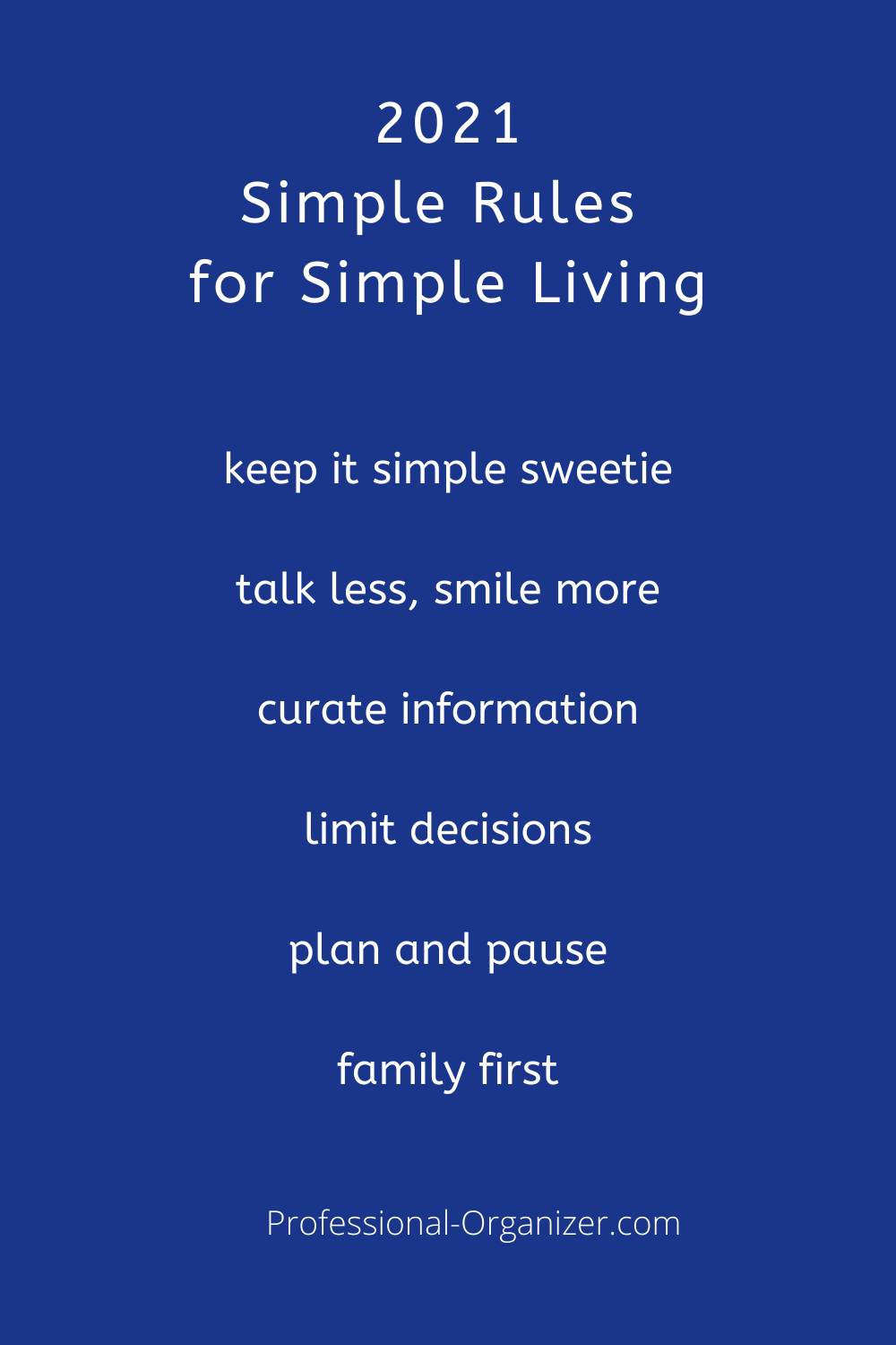 I love how you created your rules for 2021- all based on simplifying life. We know how complicated and stressful life can be, so knowing your priorities is key. It can’t reduce all of life’s stress, but it can minimize it and bring more clarity to our choices. Your second concept resonates with me. I have a similar one, which is talk less, listen more.