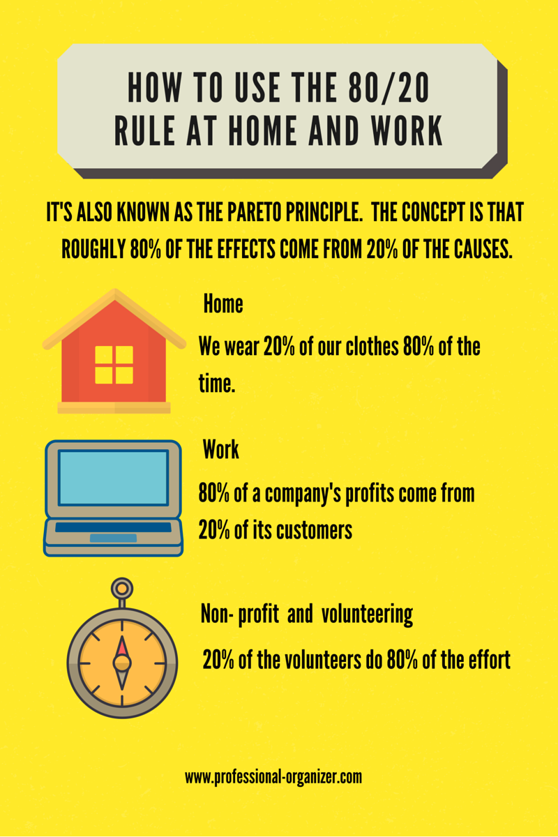 Have you heard of the 80/20 rule? It’s also known as the Pareto principle. The concept is that roughly 80% of the effects come from 20% of the causes. It’s seen as a short cut to being more focused, more organized and more productive. Here’s some statistics that show the 80/20 rule.